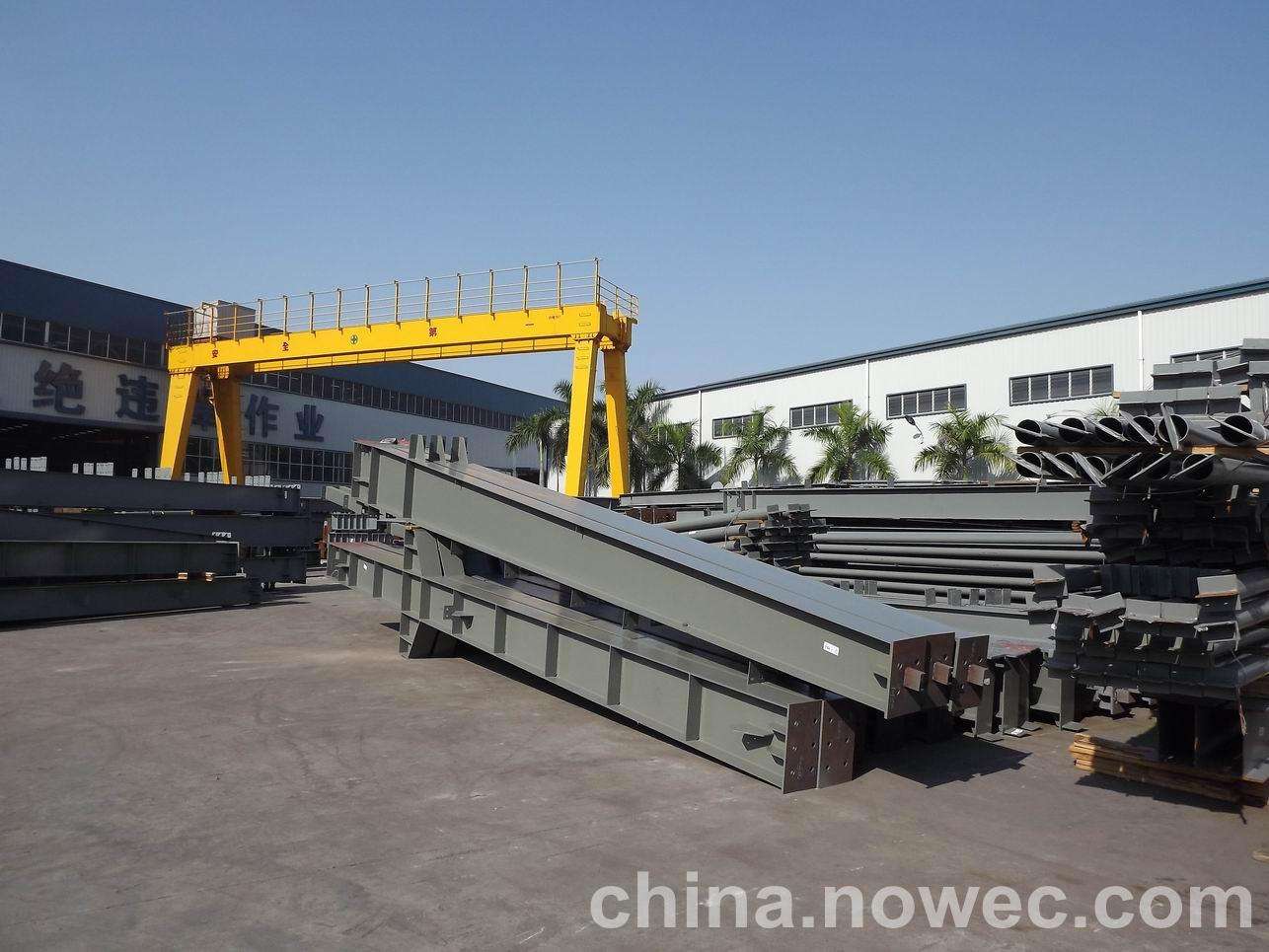 条状单元一般沿长跨方向分割,其宽度约为1~3个网格,其长度为l2或l2/2(l2为短跨跨距)。块状单元一般沿大石桥网架平面纵横向分割成矩形或正方形单元。每个单元的重量以现有起重机能胜任为准。条(块)与条(块)之间可以直接拼装,也可空一网格在高空拼装。由于条(块)状单元是在地面拼装,因而高空作业量较高空散装法大为减少,拼装支架也减少很多,又能充分利用现有起重设备,故较经济。这种安装方法适用于分割后网架的钢度和受力状况改变较小的各类中小型网架,如两向正交正放四角锥、正放抽空四角锥等网架。